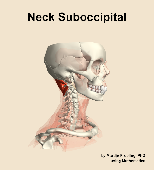 Images and description. Muscles of the suboccipital compartment of the neck Back›› Suboccipital Compartment Rectus Capitis Posterior Major Rectus Capitis Posterior Minor Obliquus Capitis Inferior Obliquus Capitis Superior